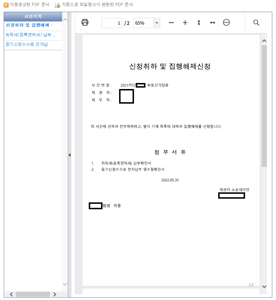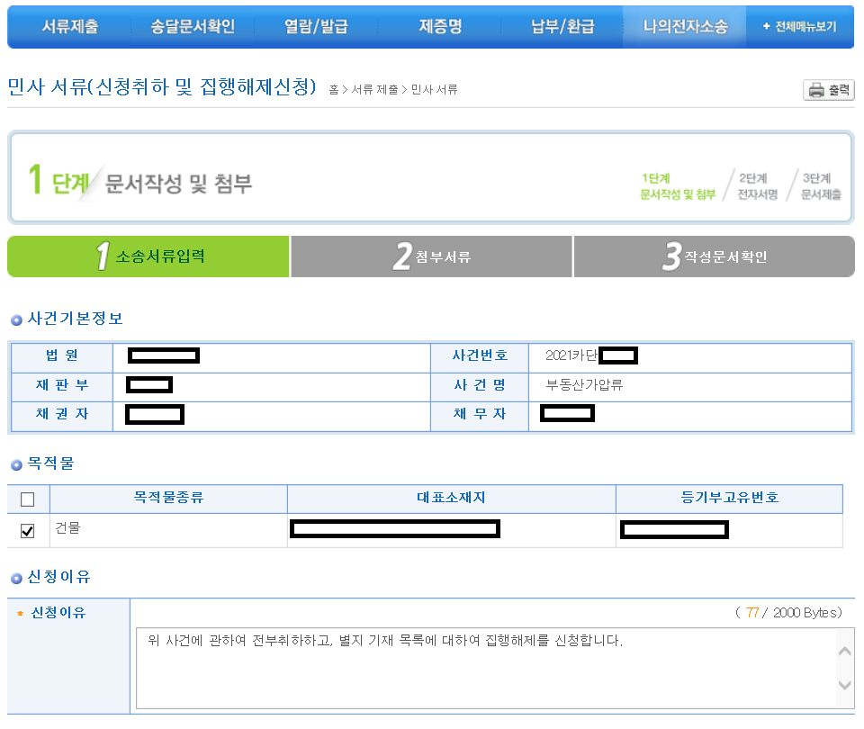 [전자소송에서 부동산 가압류 신청취하 및 집행해제하기]