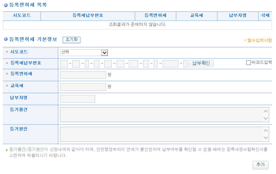 8. 그 다음으로, 집행해제에 필요한 등록면허세와 등기신청수수료를 납부 정보를 입력해야 합니다.