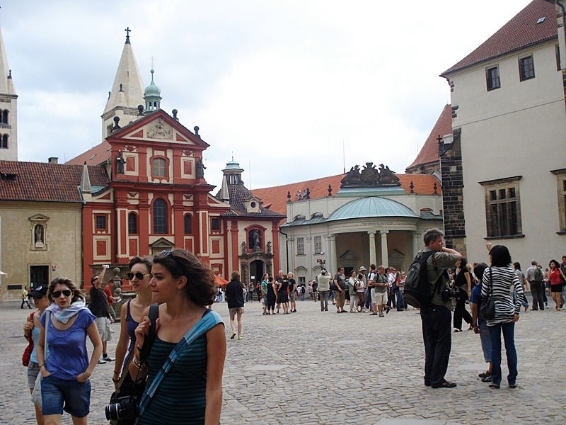 붉은색의 건물은 프라하 성에서 가장 오래된 성이르지 교회(성 조지 성당).