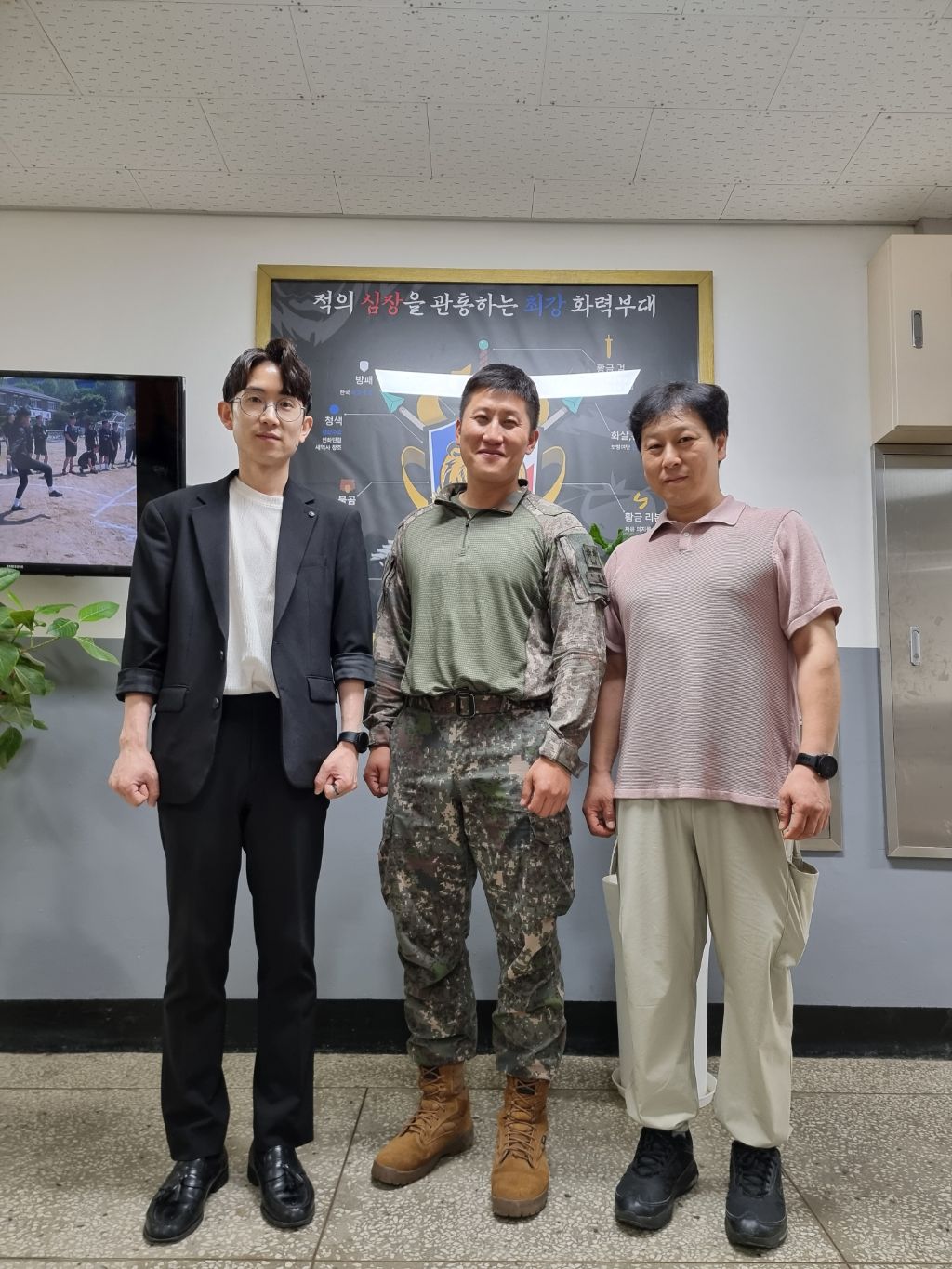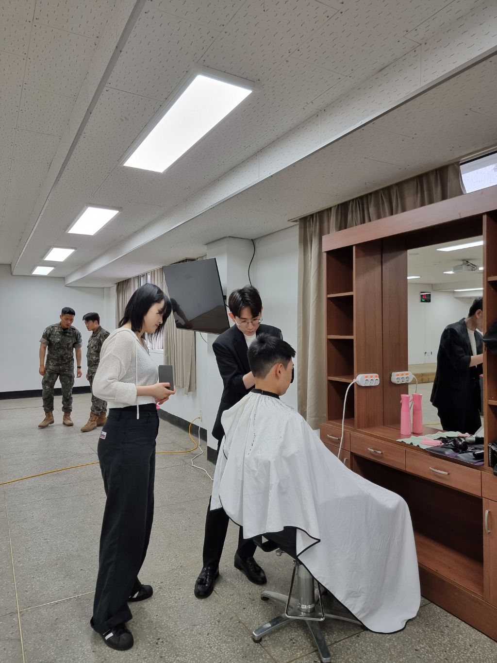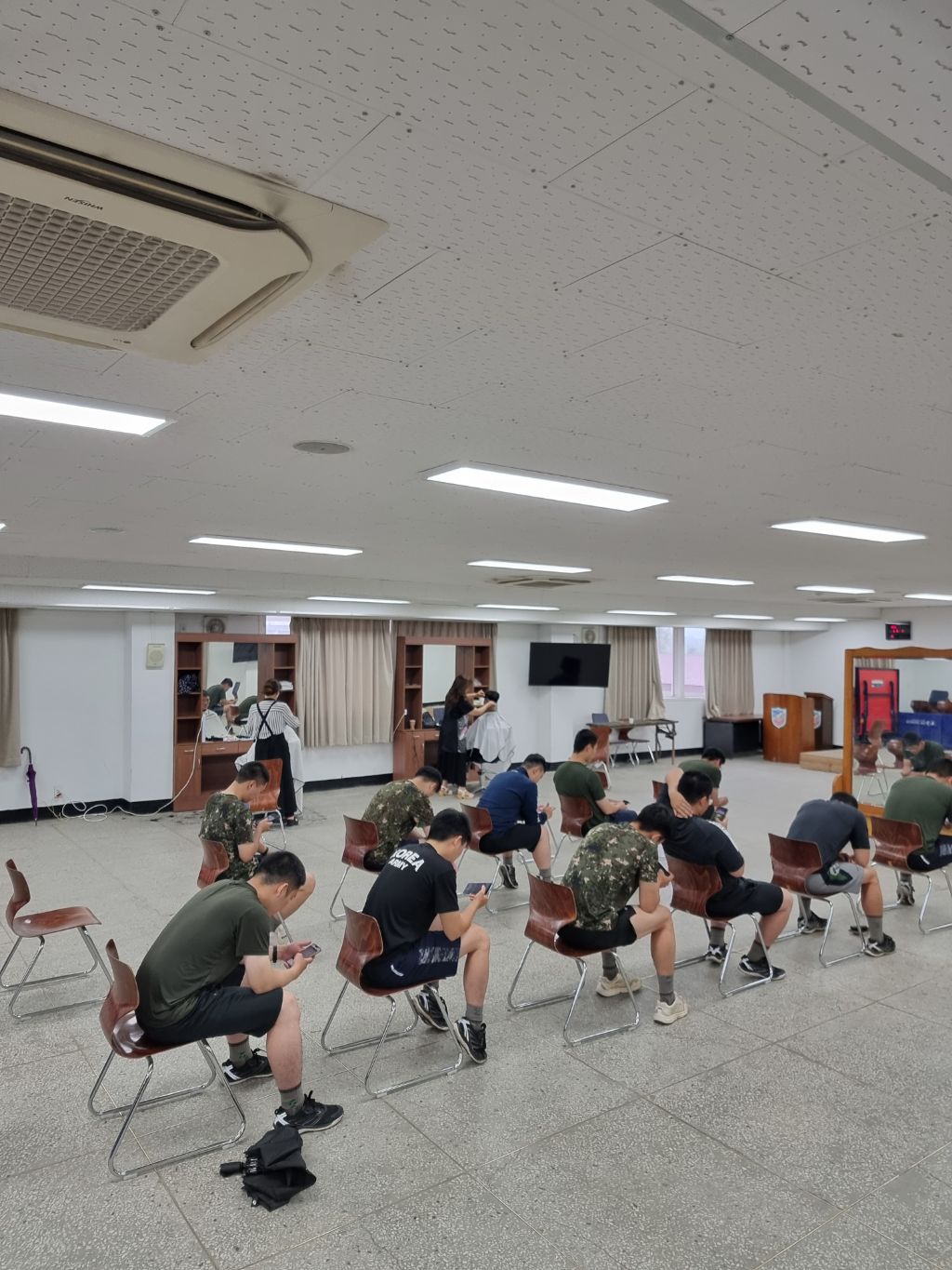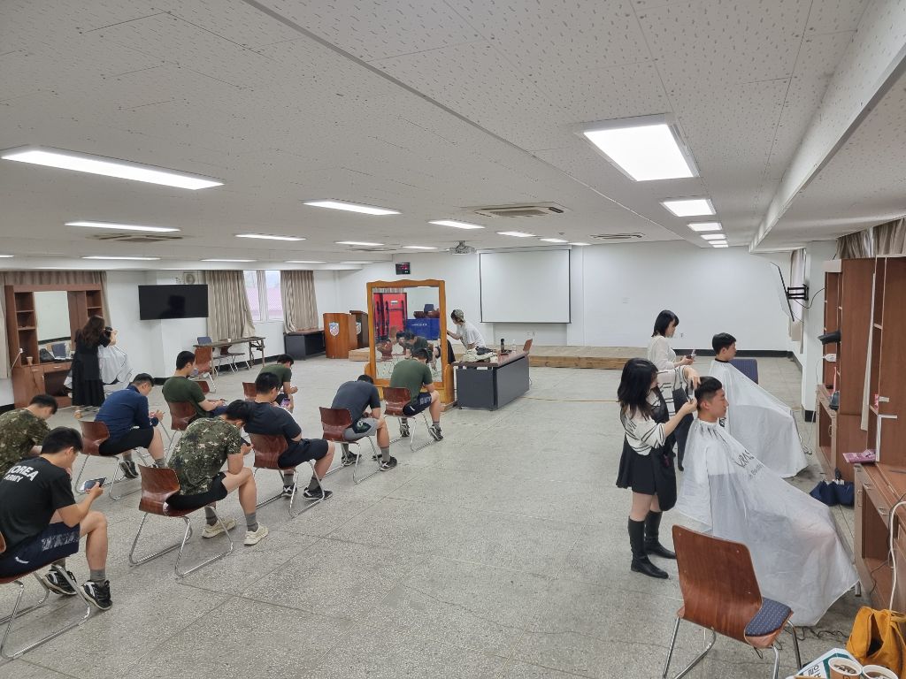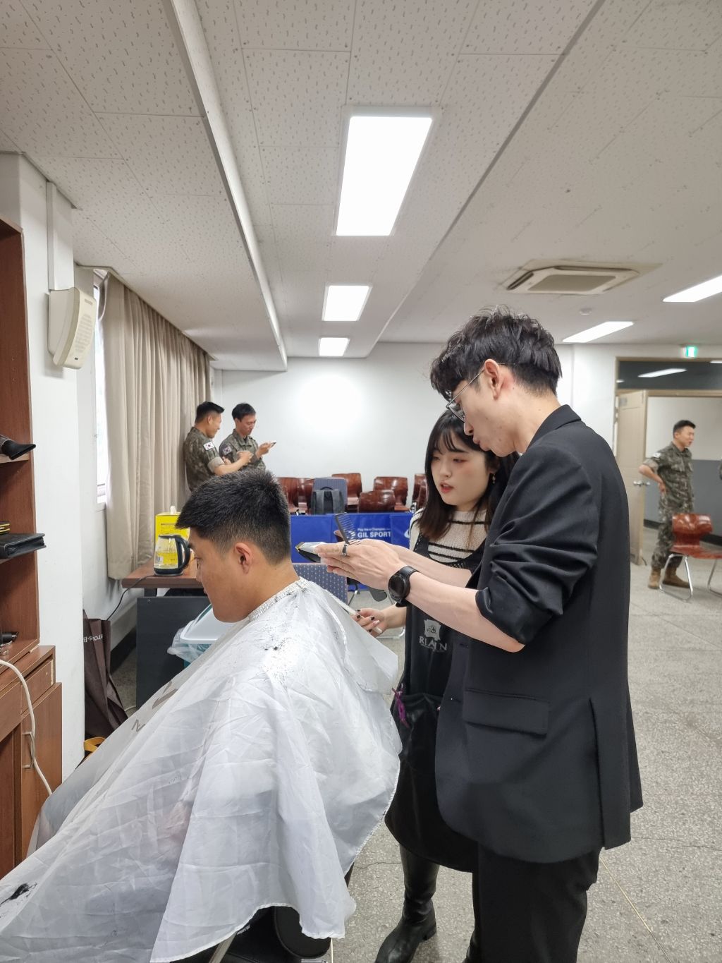수도포병여단 757대대 출신으로서 모부대 회장인 저와 공덕역에서 로윈헤어 미용샵대표 겸 대학에서 뷰티미용교수로 재직중인 우리 전우회 총무 그리고 757전우회와 운영벤치마킹 소통을 위해 2012년 부터 상호교류자매결연하고 있는 21사단 183포병전우회장과 미용디자이너 샘들과 함께 인천에 있는 제17보병사단 포병대대에 미용봉사를 다녀왔습니다