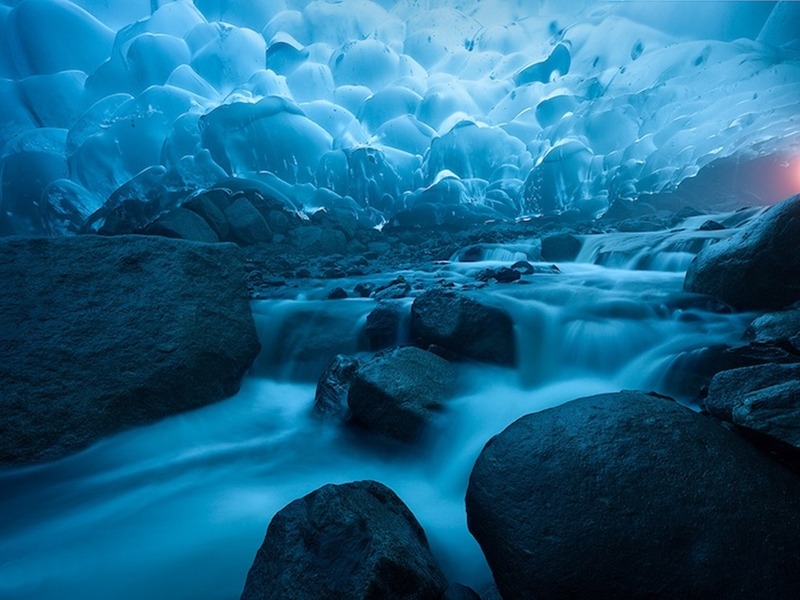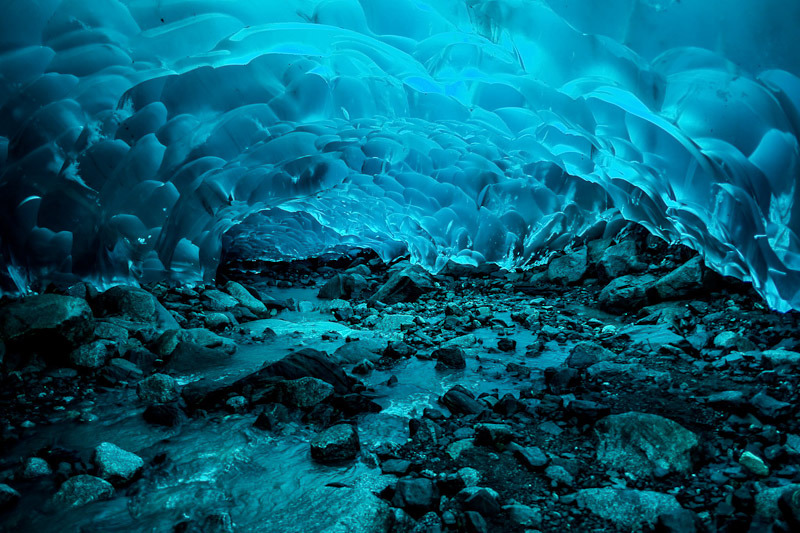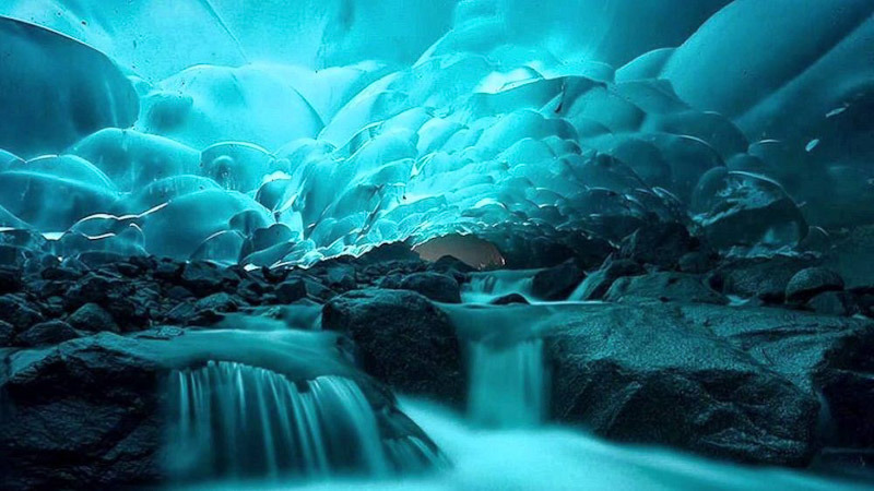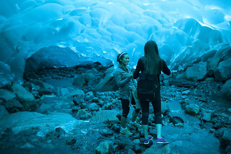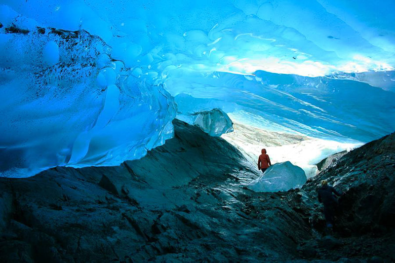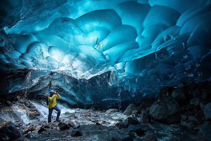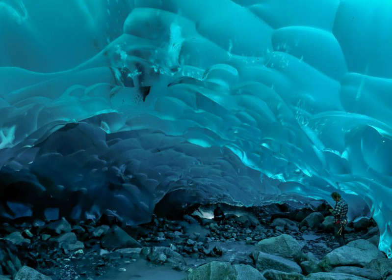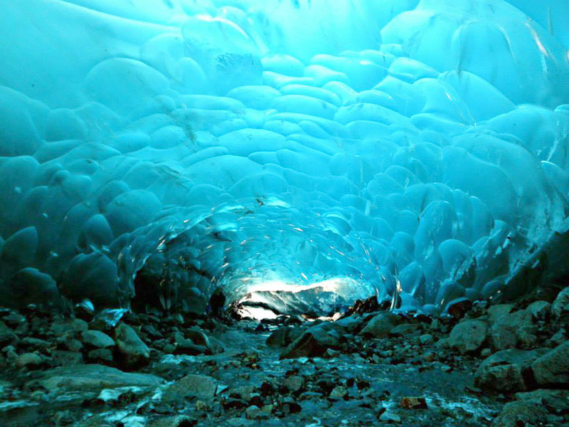 | 멘덴홀 빙하(Mendenhall Glacier) 얼음 동굴은 미국 알래스카 남동부에 위치한 주노 빙원을 구성하는 38개의 거대한 빙하의 하나인 멘델홀 빙하 아래에 위치한 얼음 동굴입니다. 알래스카 주노 다운타운에서 12마일 밖에 떨어져있습니다. 이 얼음동굴을 보기위해서는 수직으로 55m를 내려가거나 한참을 걸어서 가야합니다. 멘 덴홀 빙하 (Mendenhall Glacier)는 아래쪽에 바위와 얼음 위의 흐르는 물 뿐만 아니라 위쪽에 얼음으로 이루어진 밝은 파란색 천장이 특히 아름답습니다. |