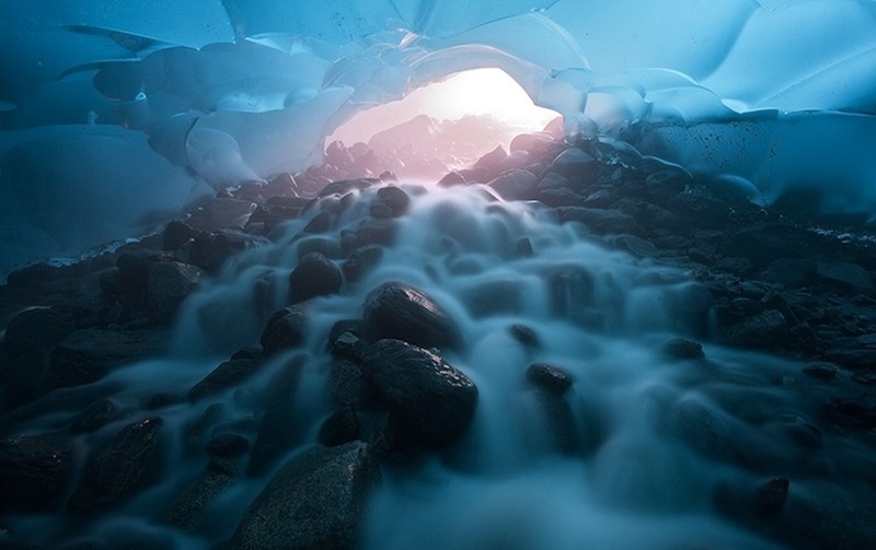 알래스카, 멘델홀 빙하 아래의 얼음 동굴