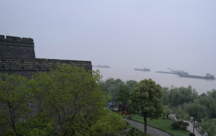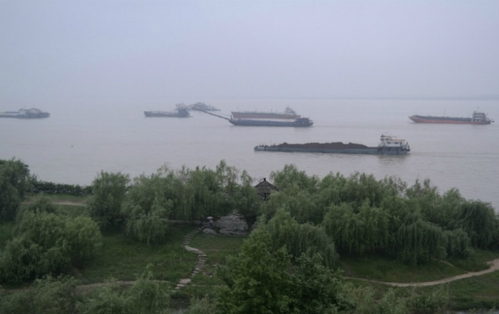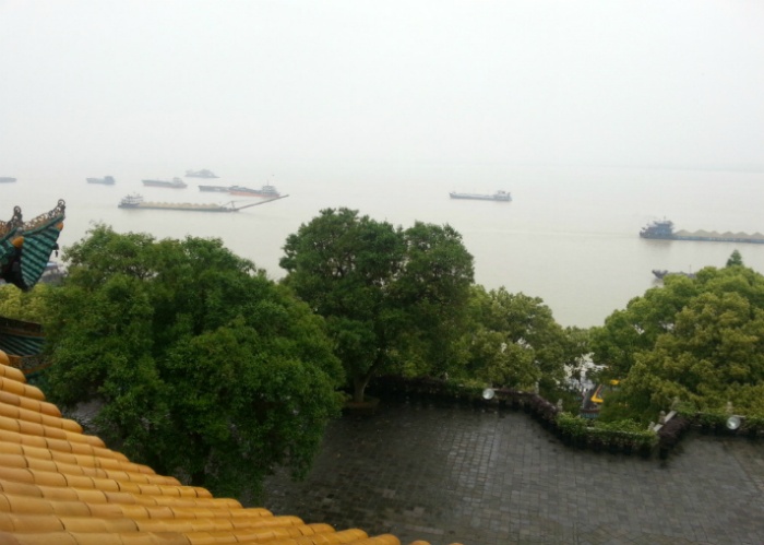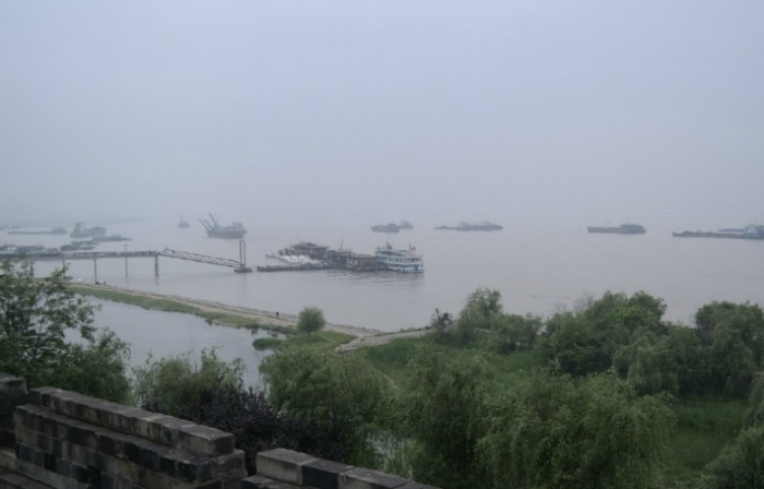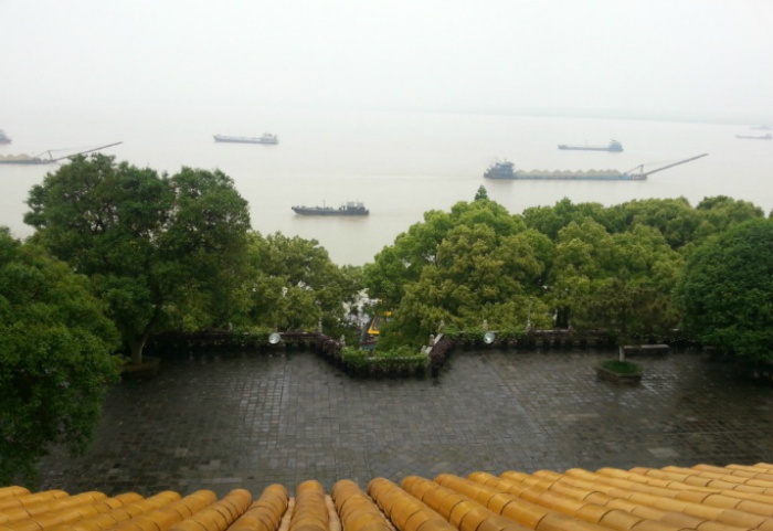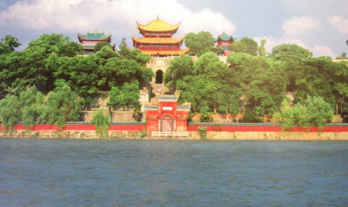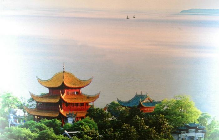 아래 쪽으로는 동정호가 보이며, 앞으로는 군산을 북쪽으로는 장강에 접한다.