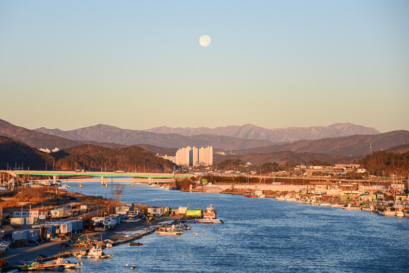 울주 회야강으로 지는 달