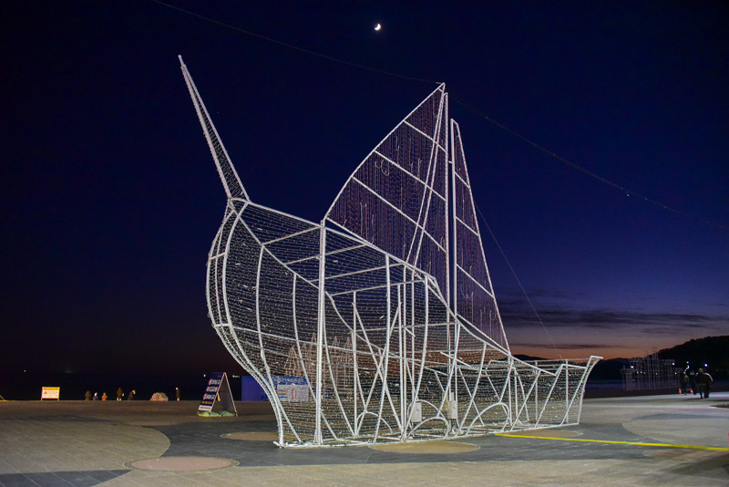 다대포 낙조분수, 초생달이 걸려있다