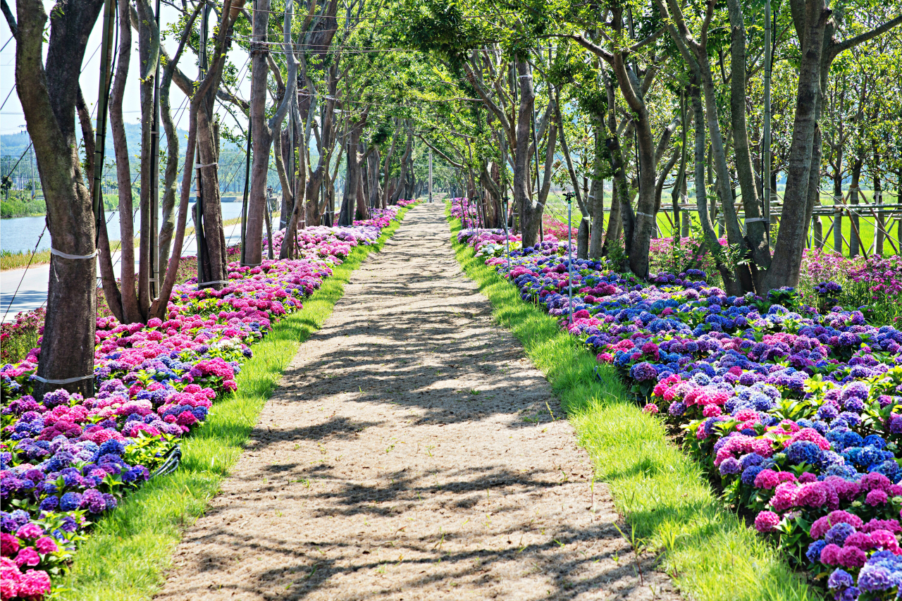 도초도 ‘환상의 정원’, ‘수국 공원’을 비롯해 섬 곳곳에는 3만송이 수국이 피고, 절정기를 맞는 오는 16일 부터 25일 까지 도초도 수국축제가 열린다.
