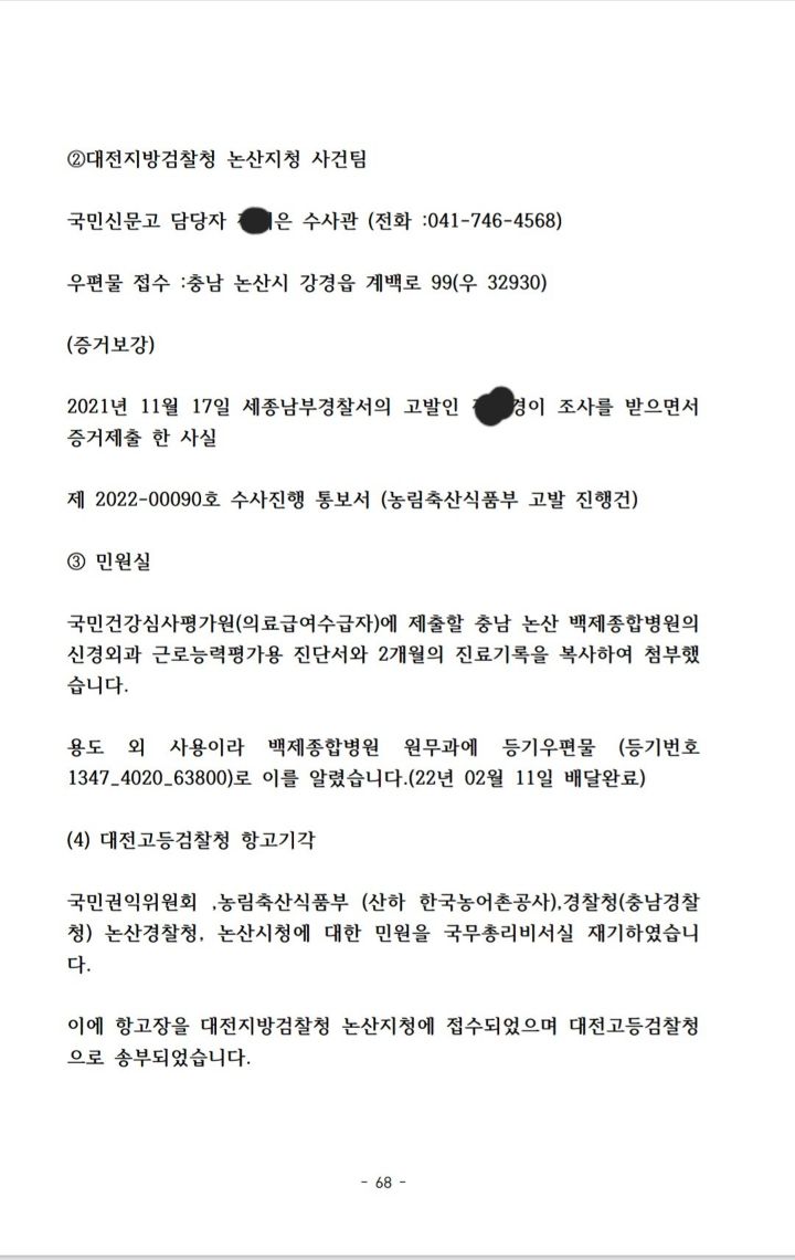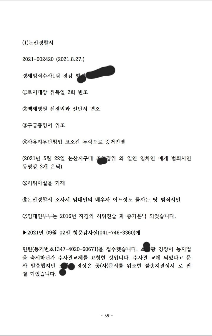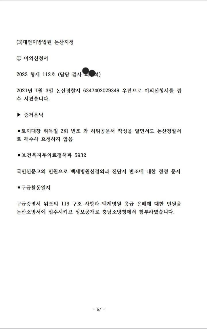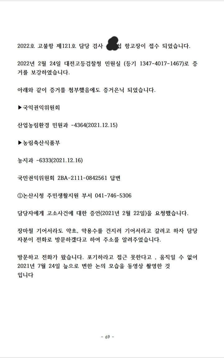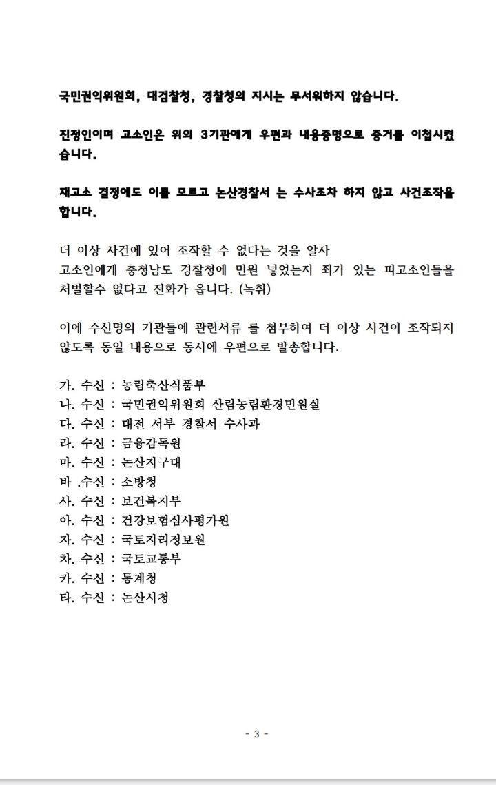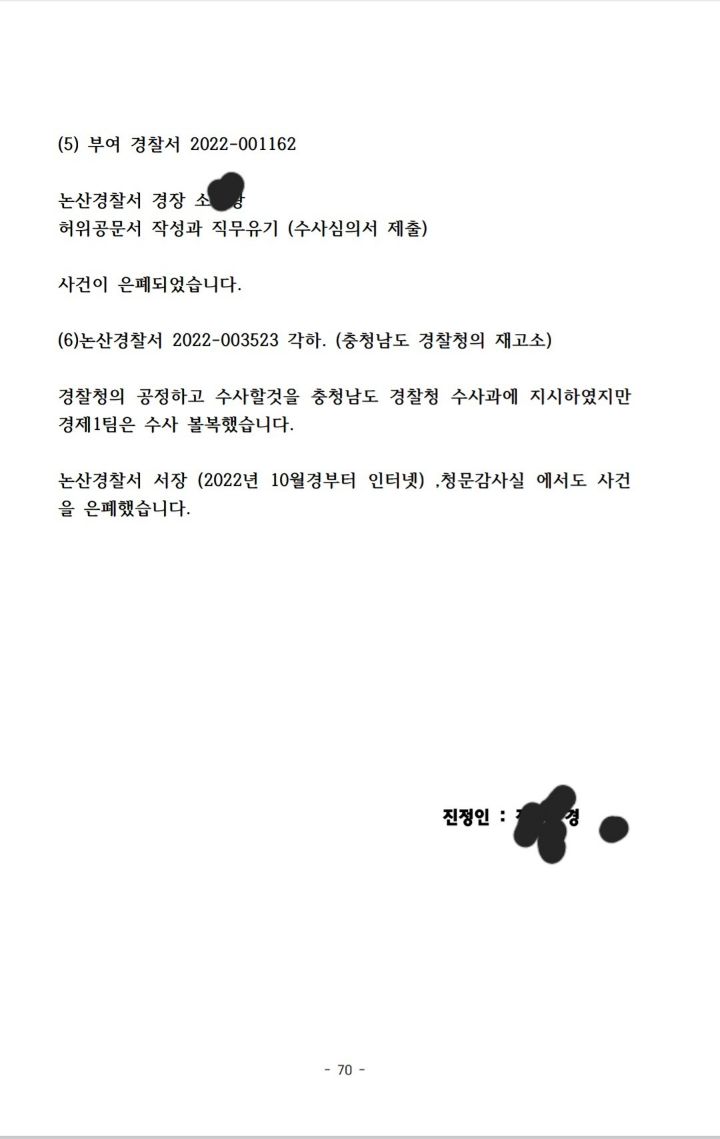 70장을 작성해 증거 검토하고 고발하라고 관련서류 첨부해 뿌렸다.