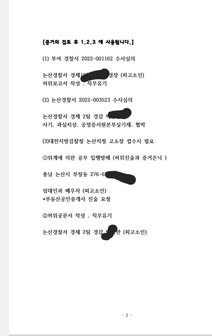 다. 수신 : 대전 서부 경찰서 수사과