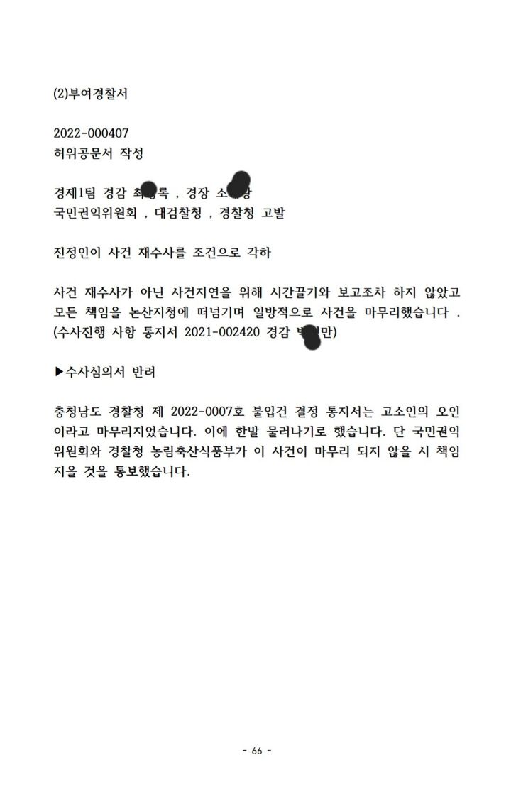 경찰서가 사건 수사 안하고 허위공문서 작성하고