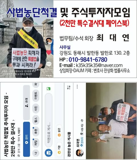* 사법농단 척결 모임및 주식 투자 피해자 모임 페이스북 2천만명 특수결사대