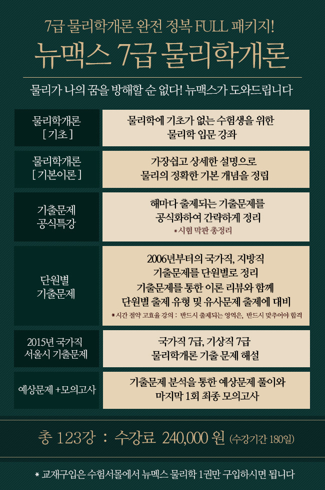 7급 기술직의 물리학개론 문제는 직관적으로 문제를 푸는 것을 요구하는 것 같습니다. 하지만 물리학개론에서 가장 중요한 것은 단원별로 나와 있는 이론 부분을 이해하고 기출문제를 계속해서 풀어보는 것이라 생각합니다. 이론이 이해가 안되더라도 여러 가지 문제를 풀다보면 이론이 이해되는 경우가 많습니다.