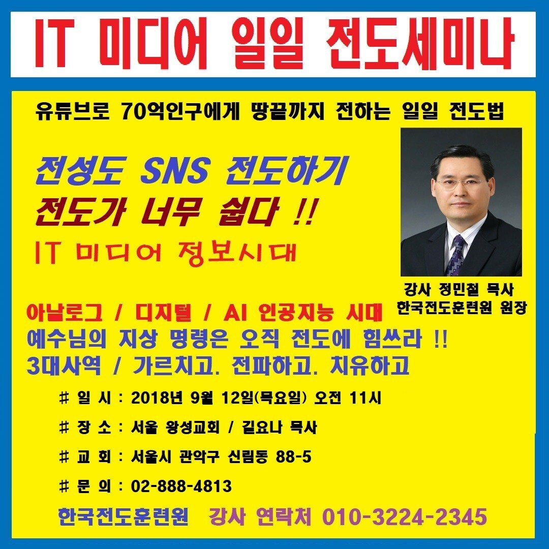 너희는 온천하에 다니며 만민에게 복음을 전파하라(막16장15절) 지금시대가 바로 온천하에 다니며 만민에게 복음을 전파하는 시대가 왔습니다. 지금은 누구나 유튜브 채널을 개설해서 전세계 70억명에게 복음을 전파하는 시대입니다.