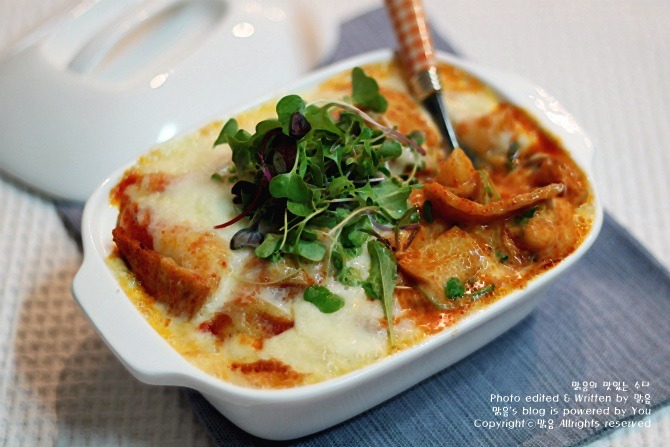 김치떡볶이에 피자치즈 올려 오븐 또는 전자렌지에 돌리면 치즈김치떡볶이로...