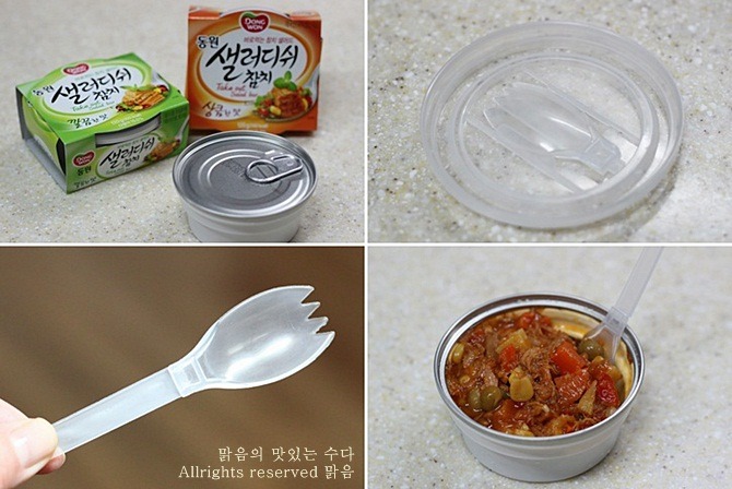뚜껑에 스푼까지 붙어있어 출출할때 테이크아웃으로 바로 먹을 수 있는 참치샐러드입니다.