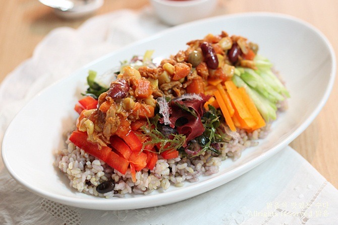 [ 해초&참치비빔밥, 한그릇 일품요리, 참치요리, 파프리카요리, 해초요리,비빔밥만들기, 동원샐러디쉬참치 ]