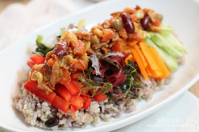 밥보다 비빔재료의 양이 훨씬 더 많은 해초&참치비빔밥!!