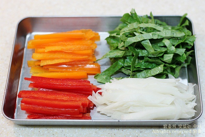파프리카와 로메인, 쌈무도 채 썰어주세요.