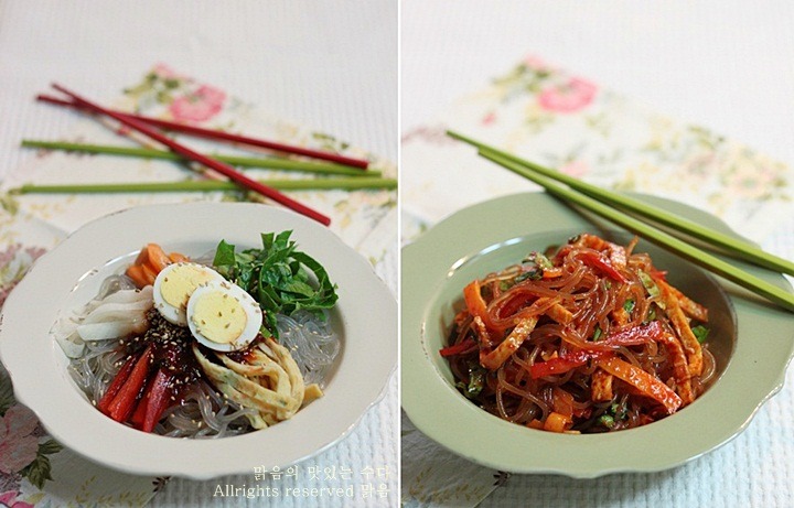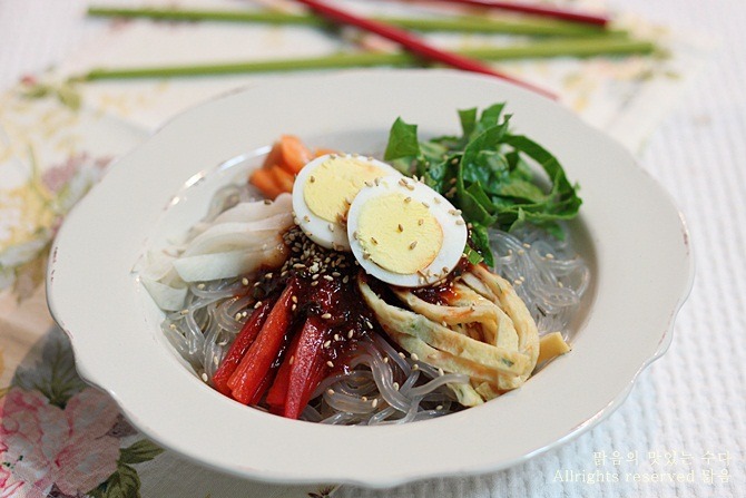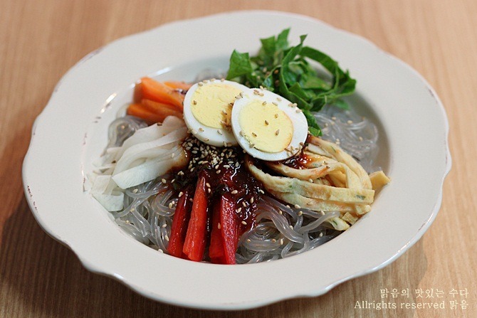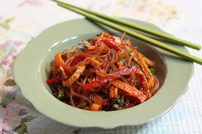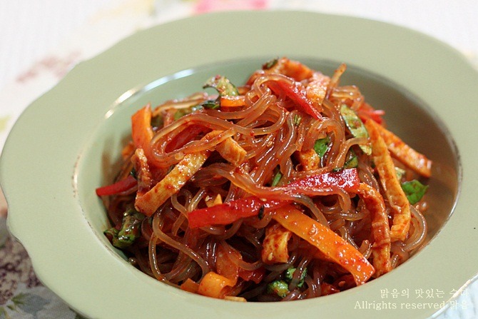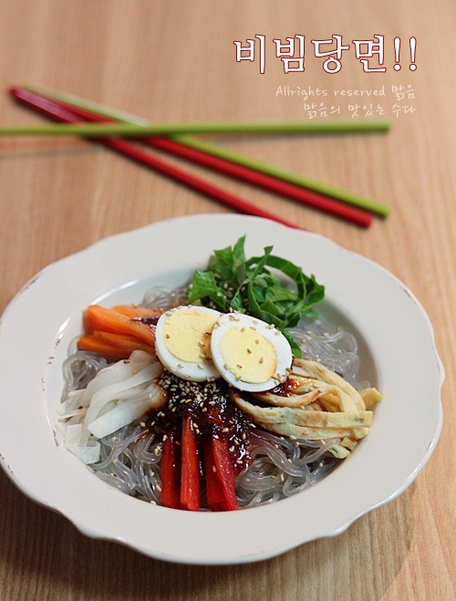 방정맞게 왈츠를 추는것 같은 느낌의 비빔당면입니다.