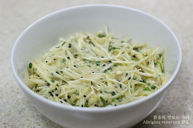 소금 넣고 골고루 섞어 숨이 살짝 죽을때까지 기다렸다가...