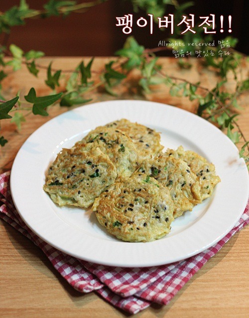 제가 그토록 좋아하는 팽이버섯전 완성입니다.ㅋ