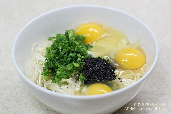 실파, 검은깨, 달걀 넣어 골고루 저어주면...