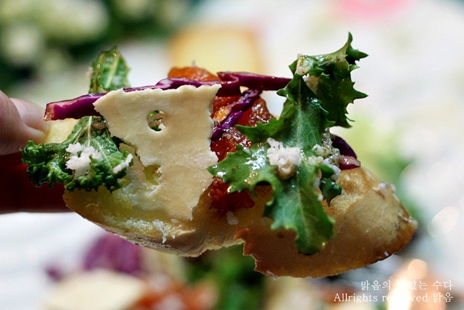이렇게 샐러드를 빵위에 올려 오픈토스트로 묵어도 조코...