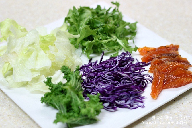 * 발사믹드레싱 - 올리브오일 2큰술, 발사믹식초 1.5큰술, 매실액 1큰술, 후추랑 소금 약간