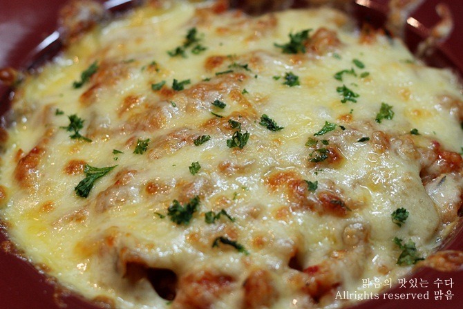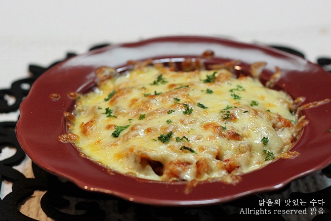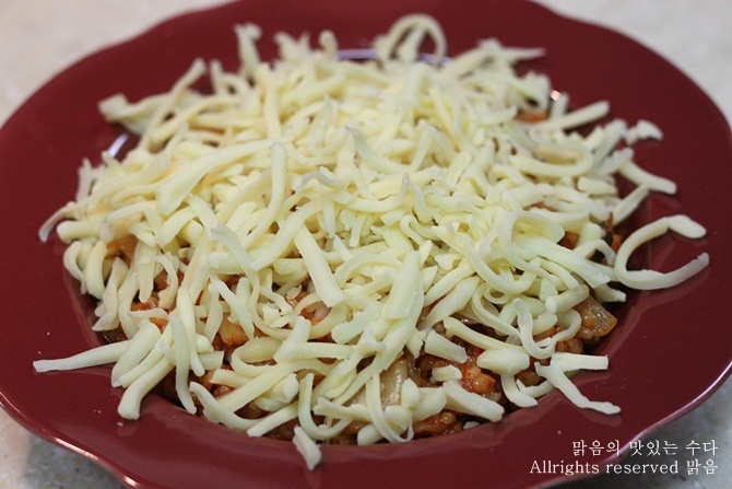 전자렌지에 돌리면 치즈가 이렇게 갈색빛이 돌게 이쁘게 궈지지 않아