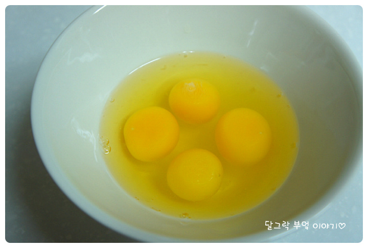 계란은 알끈을 제거하고 잘 풀어 주어요.