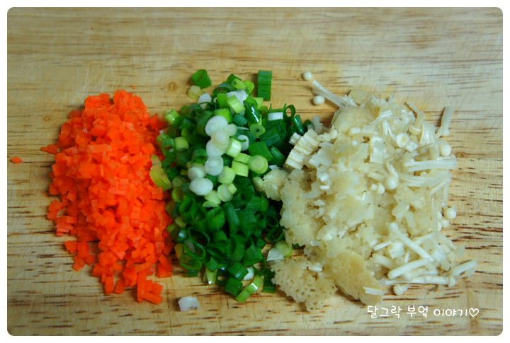 저는 당근, 팽이버섯, 쪽파를 송송 다져서 준비했어요.
