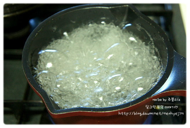 소금과 식초를 약간씩 넣은 다음 약 7분~8분 정도 삶아요.