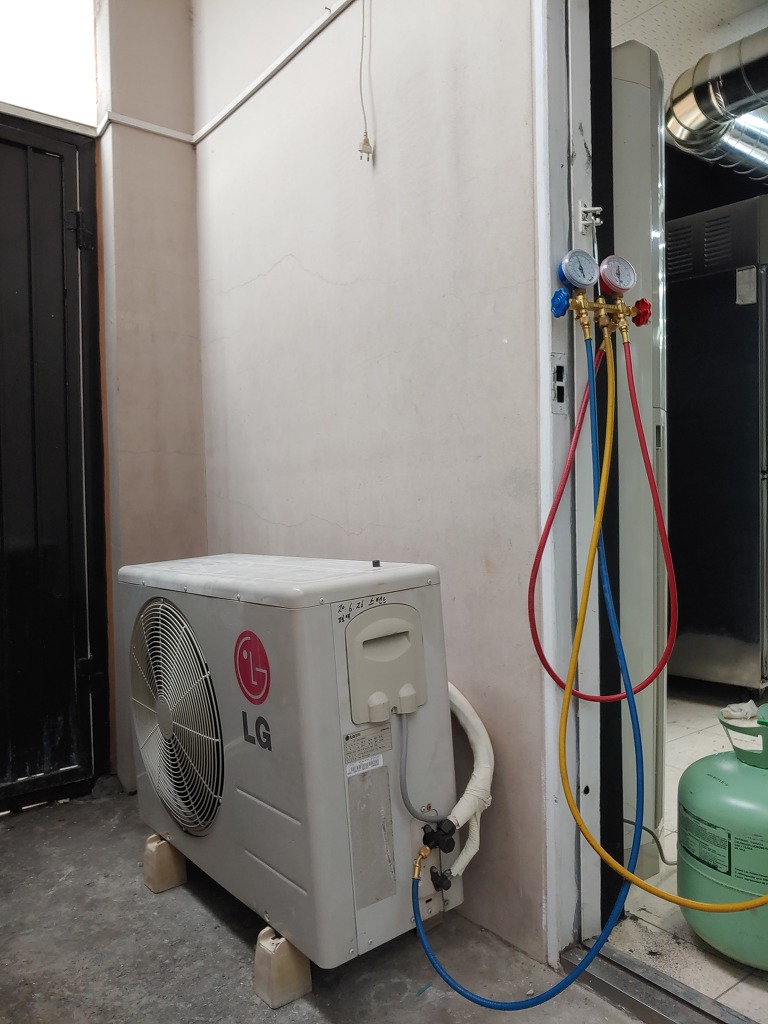 시운전하며 실외기에 냉매보충은 서비스로 진행