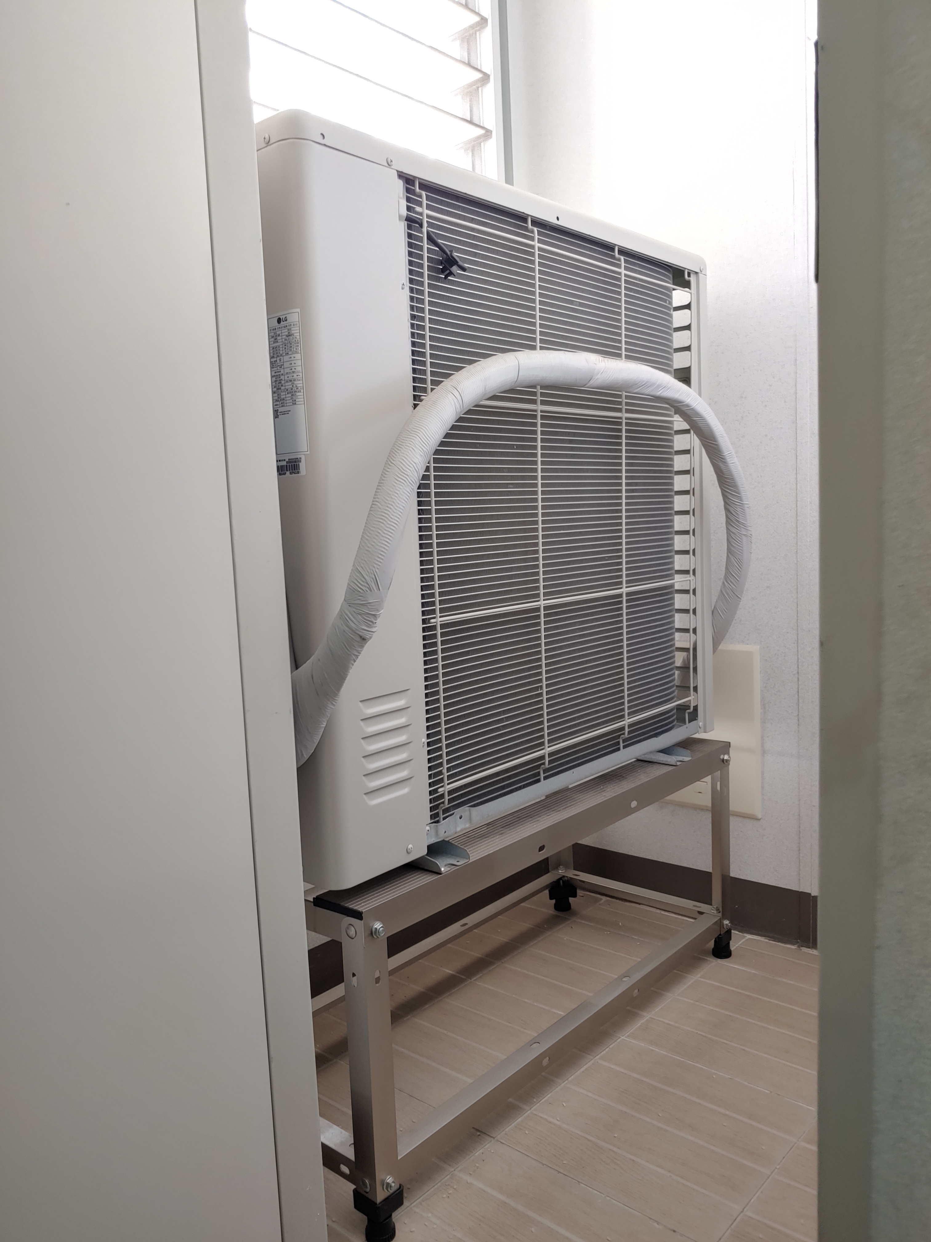 기존 산소배출기가 실외기함에 자리 잡고 전원 선 사용 중