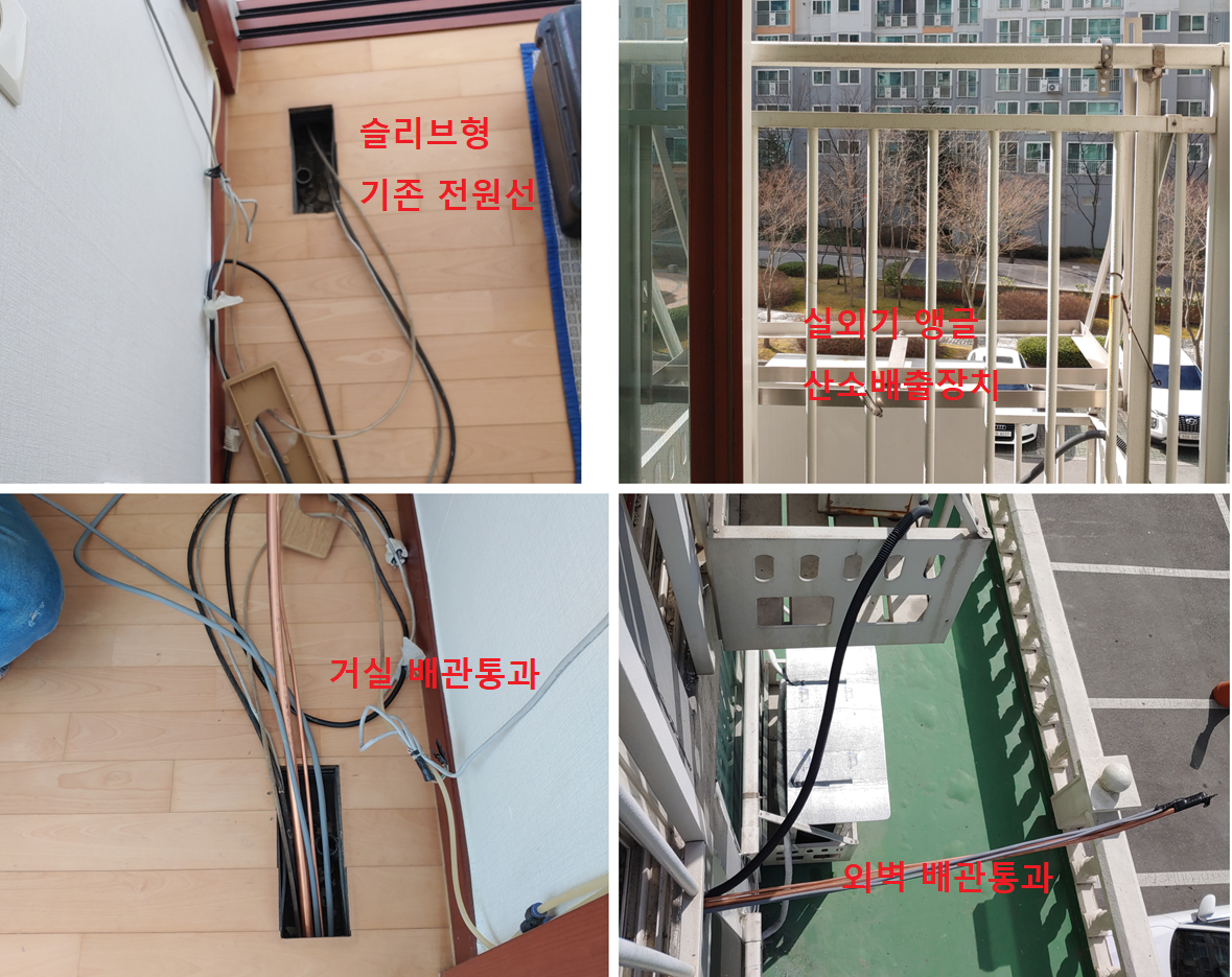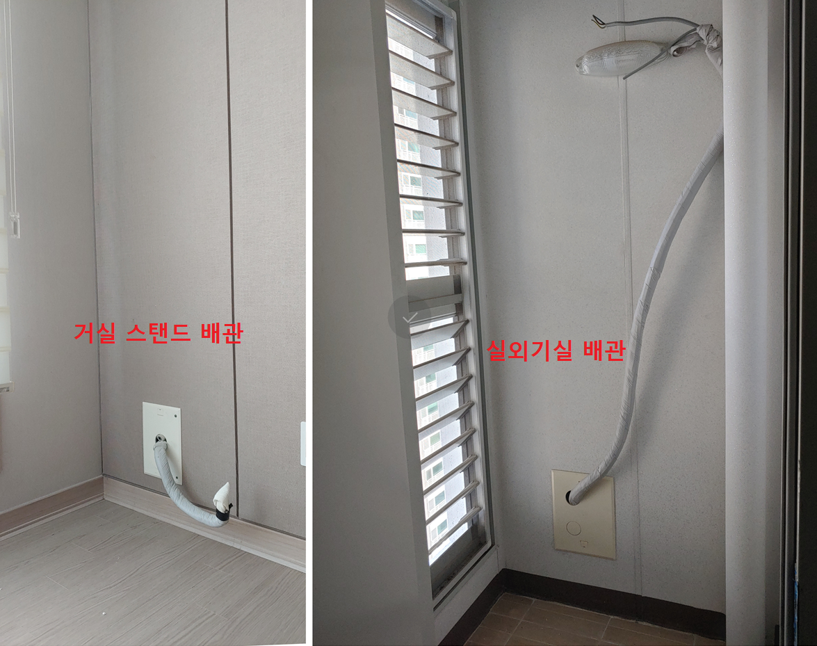 좌측 상단 에어컨 배관을 거실과 실외기까지 슬리브 형 통로식