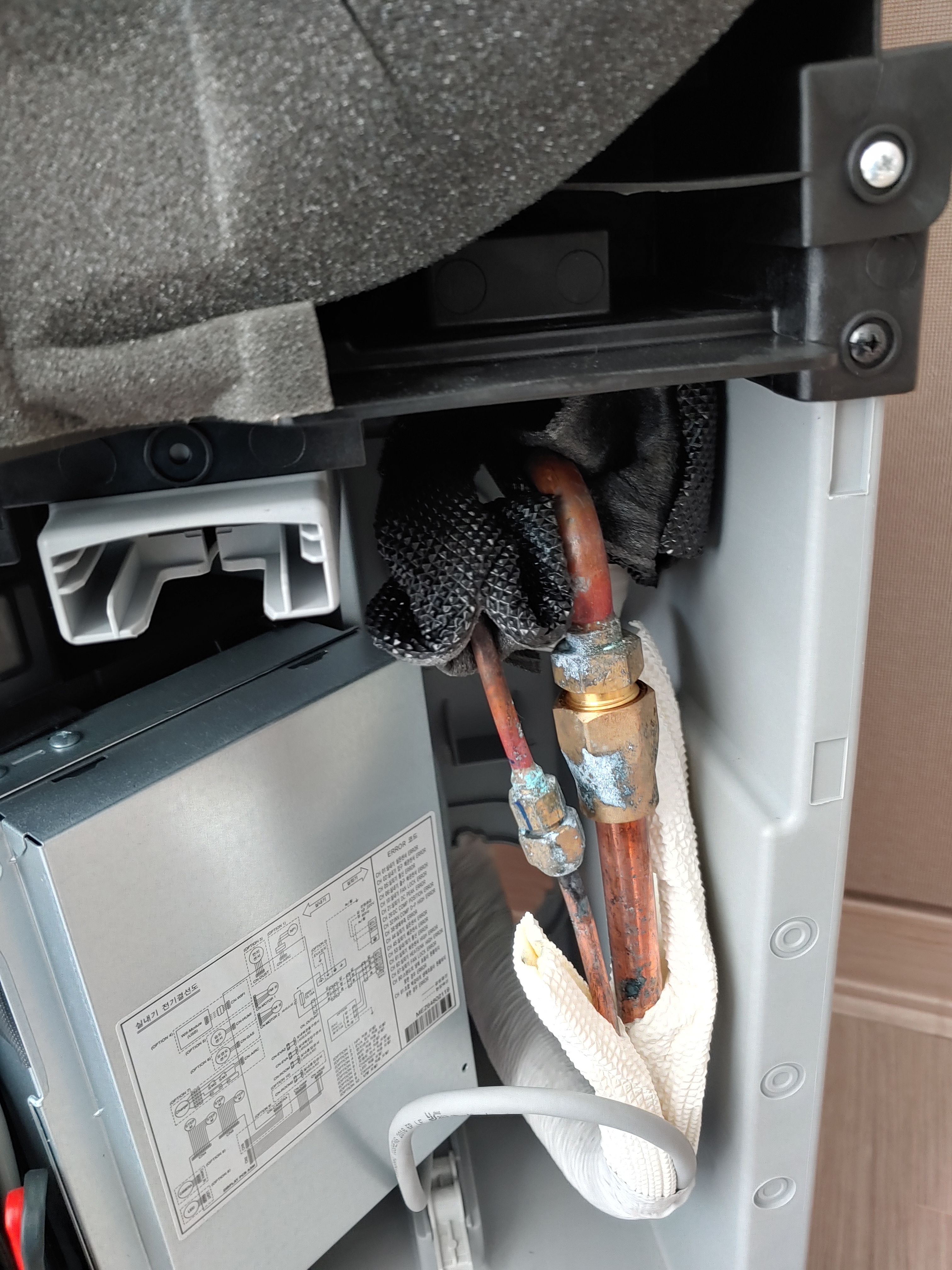 실내기와 실외기 간 배관 연결 작업이 완료된 후