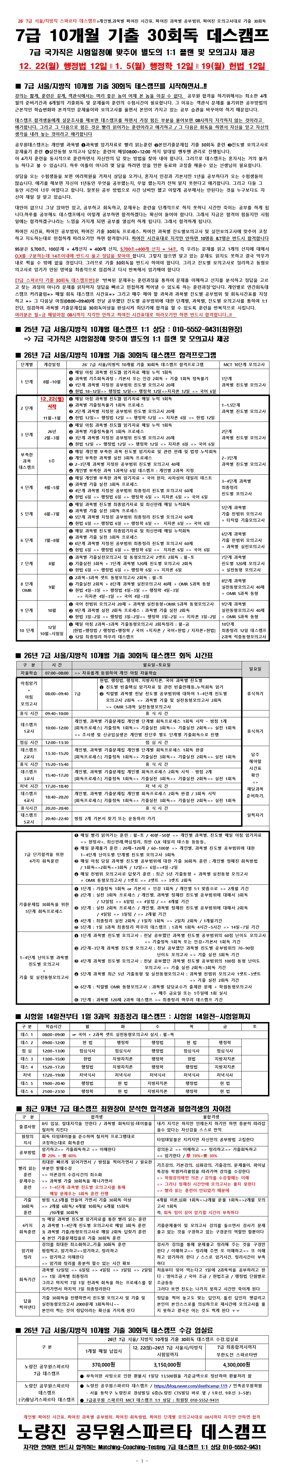 7급 국가직 9개월 / 지방직 10개월 스파르타 기출 30회독 데스캠프(12/22) 작성자소리엘|작성시간25.12.20|조회수4 목록 댓글 0 글자크기 작게가 글자크기 크게가 다음검색 현재 게시글 추가 기능 열기 북마크 공유하기 신고 센터로 신고 댓글 댓글 0 댓글쓰기 답글쓰기 댓글 리스트