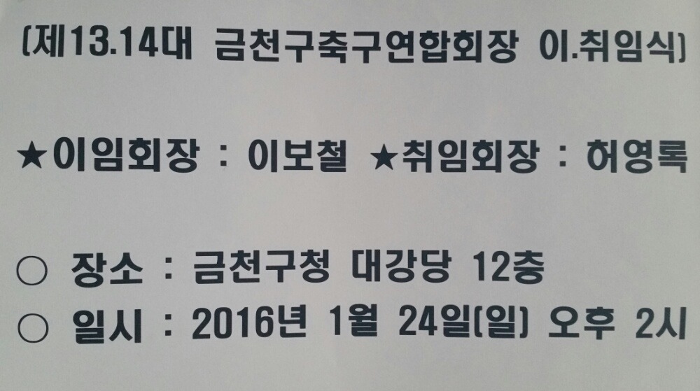 ■ 허영록 회장 금천구 축구연합회장 오르다 ■