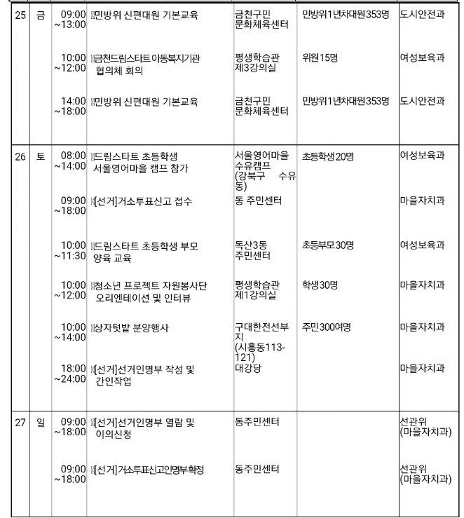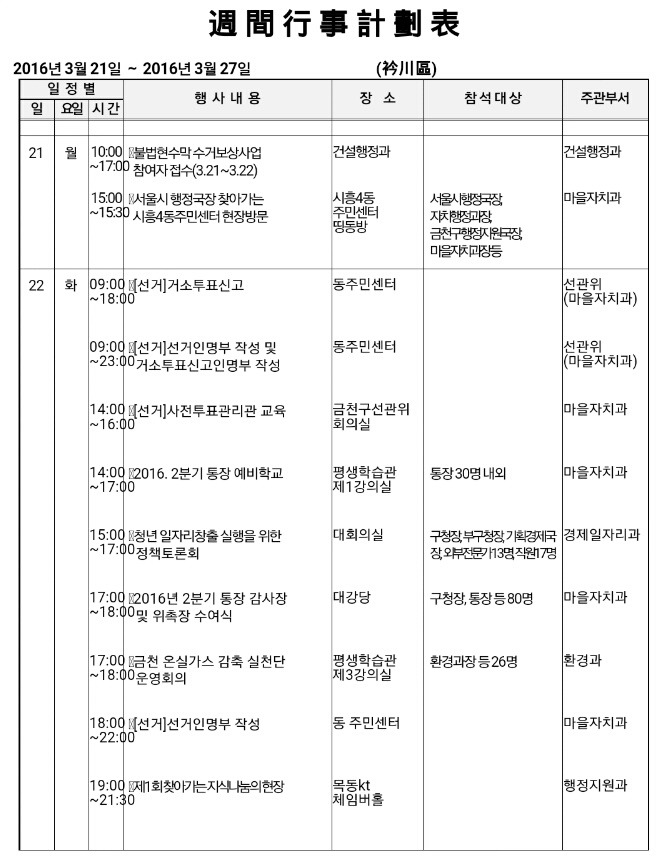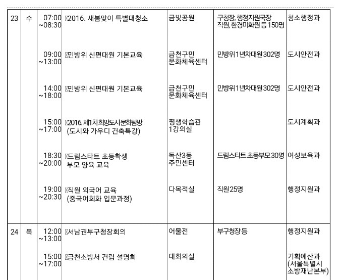 금천구 주간행사표 작성자대표 신철호|작성시간16.03.19|조회수31 목록 댓글 0 글자크기 작게가 글자크기 크게가 금천구 주간행사표3월 21일부터 27일까지..금천저널지역신문사대표 신철호 올립니다.기사제보 010-3288-3148 다음검색 현재 게시글 추가 기능 열기 북마크 공유하기 신고 센터로 신고 댓글 댓글 0 댓글쓰기 답글쓰기 댓글 리스트