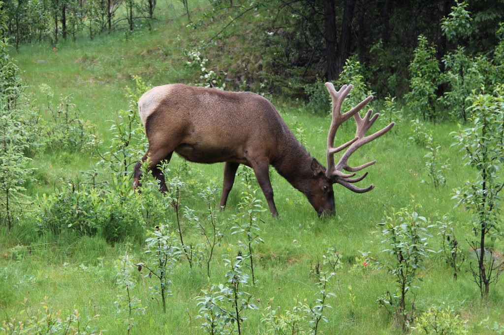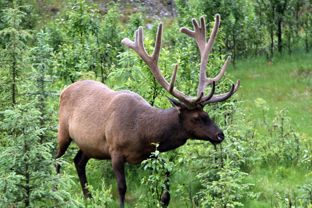 수컷은 장대하고 우아한 뿔을 자랑하고 있는데, 너무 커서 활동에 지장이 없을까? 생각할만큼 뿔이 크고요,체구도 거의 말과 비슷하게 보입니다, 인간을 두려워 하지 않는 듯 자동차가 다니는 도로옆의 초지에 자주 목격되었습니다 <2011.7.10.제스퍼에서>