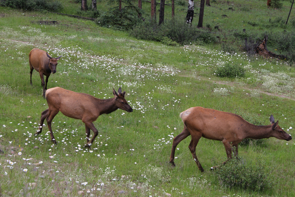 엘크가 뛰어 노는 풀밭에는 모르는 야생화들이 눈 부시게 피어 있습니다