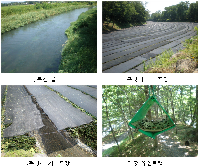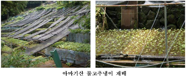 고추냉이는 음식물을 오래 보관하 면 톡 쏘는 매운맛(Sinigrin) 성분으로 미생물의 억제를 막아 음식을 오래 보관 할 수 있고, 일반농가에 보급하여 농가 소득증대 사업 작물로 각광을 받고 있 다.
