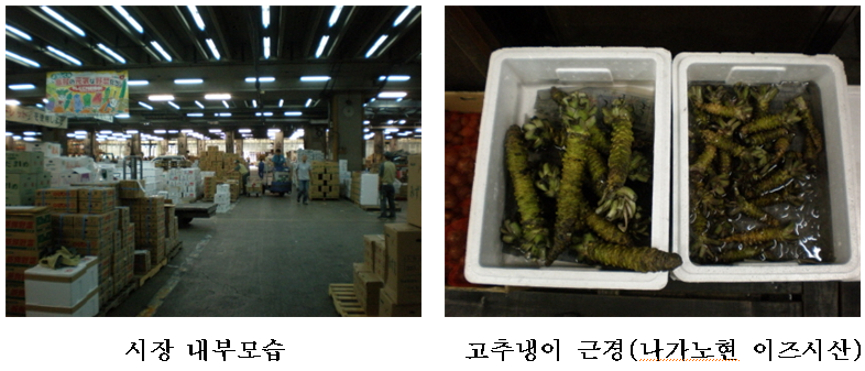 이러한 다양한 생리활성으로 인하여 고추냉이는 신선도나 보존성을 개선하기 위한 목적으로 식품에 주로 적용되어 왔다. 예를 들면, 대한민국 공개특허 제 2002-26929호에서는 고추냉이 추출물을 함유하는 육류의 신선도 유지제가 개 시되어 있으며, 대한민국 공개특허 제2003-94194호에는 김치의 보존성을 향상 시키기 위하여 김치의 주원료와 양념이외에 고추냉이를 첨가하여 제조한 와사 비 김치가 개시되어 있다.