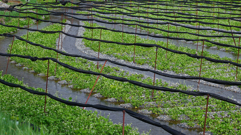 맑은 물이 끊임없이 흐르는 곳에서라야 제대로 '사와와사비(수경재배 와사비)'가 자랄수가 있습니다.