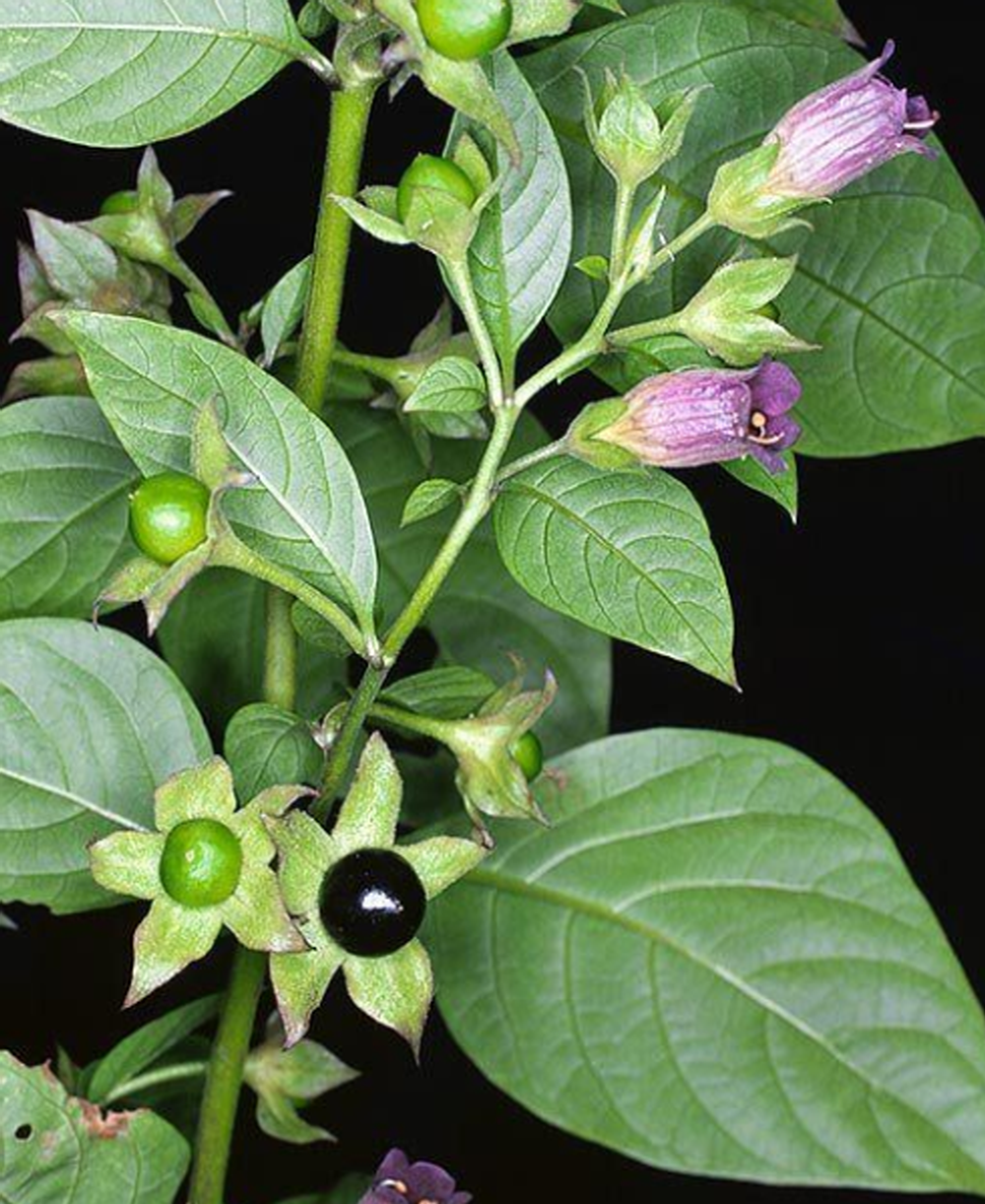 독성이 강한이 식물 은 유라시아 중부 및 남부의 숲이 우거진 지역이나 폐기물 지역의 토착 식물 입니다. 키가 약 1.5 미터 (4 ~ 5 피트)까지 자라며 칙칙한 녹색 잎 , 잎 겨드랑이 또는 가지 포크에 보라색 또는 녹색 꽃 , 체리 크기 정도의 달콤하고 반짝이는 검은 열매 , 큰 테이퍼링이 있습니다. Belladonna 또는 치명적인 밤 그늘 ( Atropa belladonna ). 잎과 열매에는 몇 가지 독성 알칼로이드가 포함되어 있으며 인간에게 매우 유독합니다.