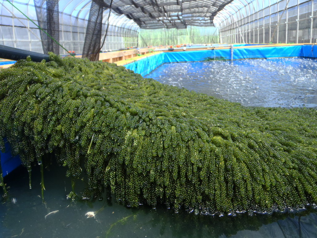 바다포도의 성공 비결은 수온(20~25℃)과 일광 조절, 신선한 바다물의 공급이 가장 중요하다 한다.