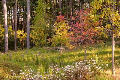 'Haymanred'(일명 Red Rage)는 남부 인디애나 출신의 남성으로 잎 반점에 대한 저항력이 우수하고 붉은 주황색 가을 색이 우수합니다.