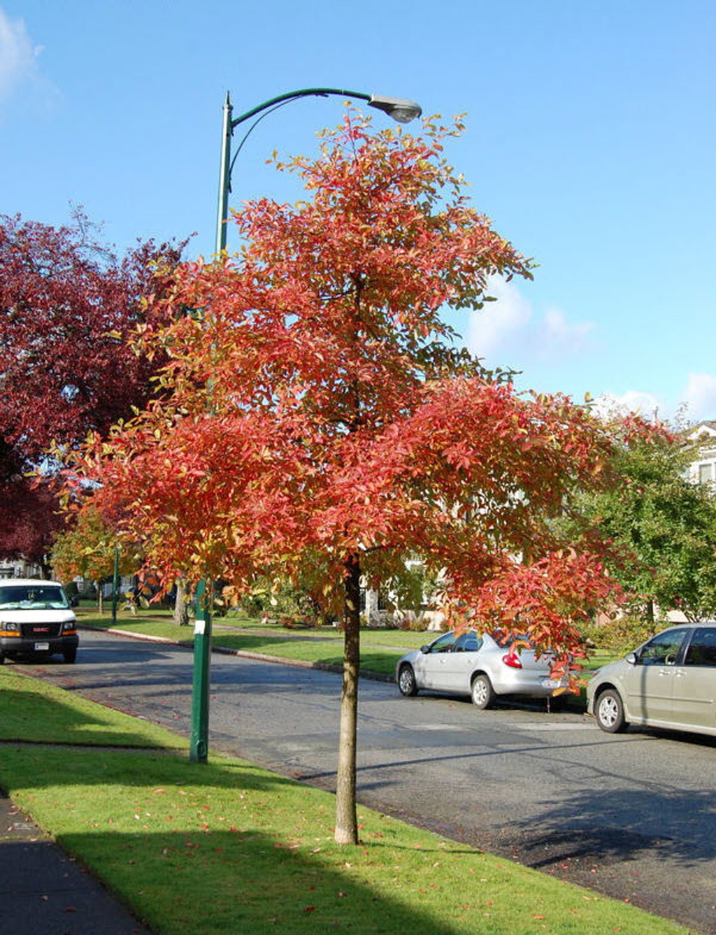 '와일 파이어'는 여름에 붉게 물든 새 잎사귀를 가진 수컷입니다.가을 색은 빨강보다 황금색입니다.오리건 보육원에서 묘목으로 발견되었습니다.화씨 영하 20 도나 섭씨 영하 29도 (존 5)로 표시되며 더 많은 종묘장 목록에있는 것 같습니다.