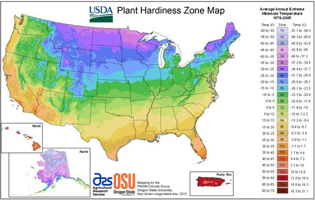 USDA hardiness zones map. Image courtesy of statebystategardening.com