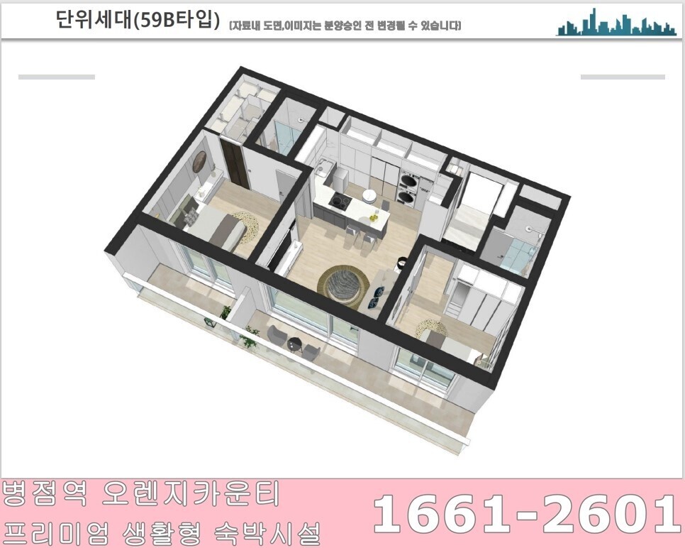 - 2Room, 2Bath, 3Bay 오피스텔에 없는 발코니 제공