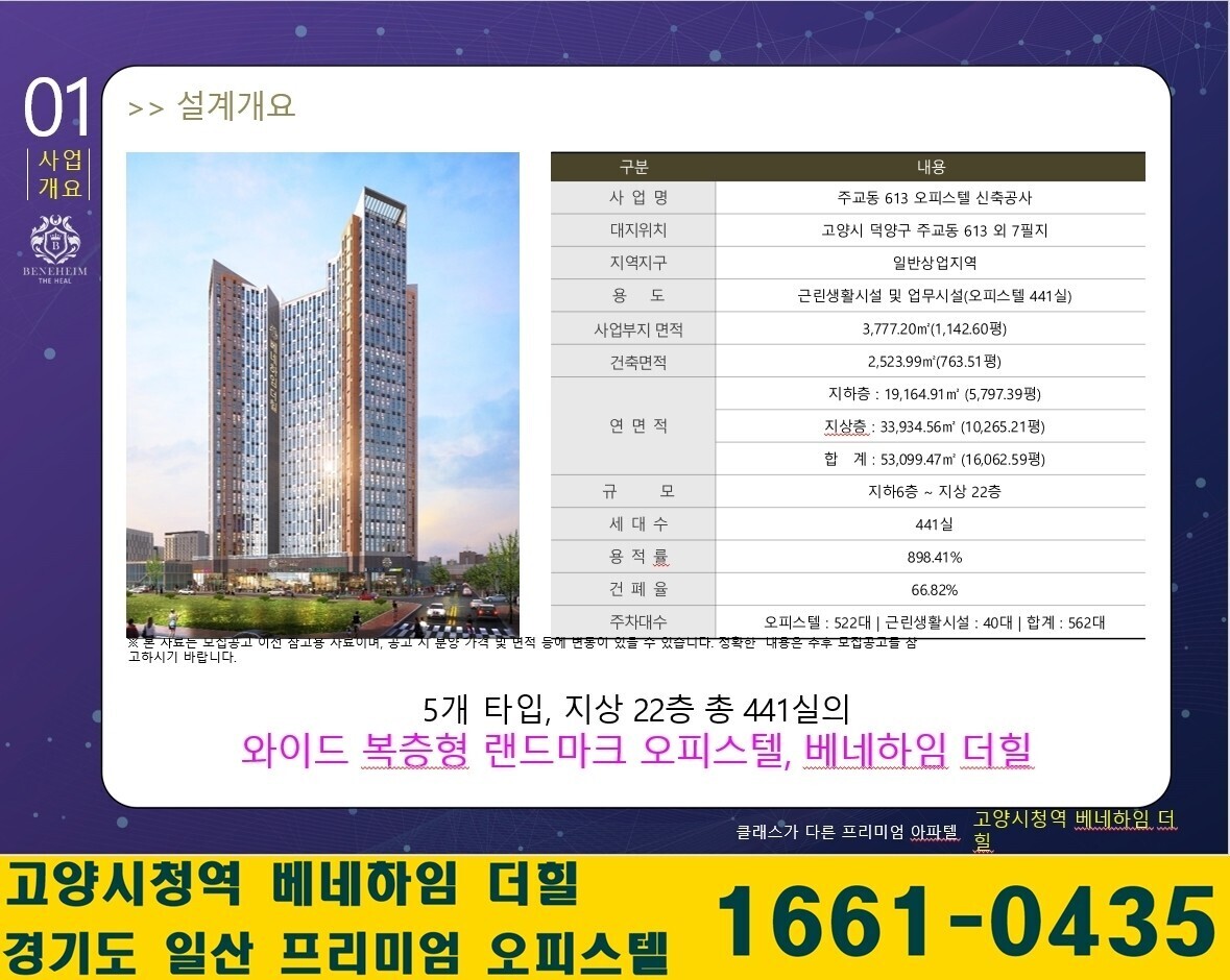 ■ 건축규모: 지하 6층 ~ 지상 22층 / 근린생활시설 및 업무시설 (오피스텔 441실)